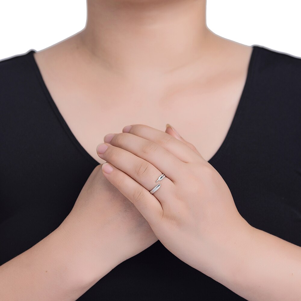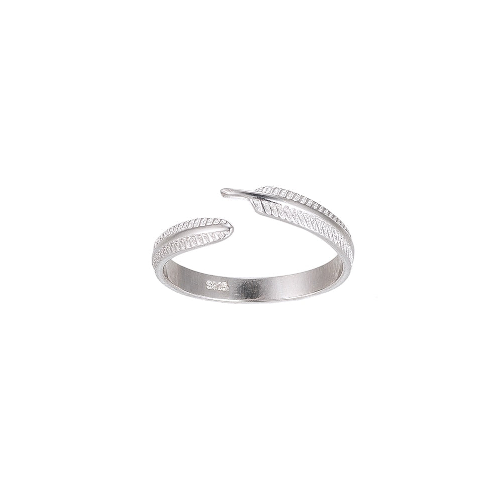 Crafted with attention to detail, this sterling silver ring flaunts a feather design that will bring an angelic feel to your outfits.