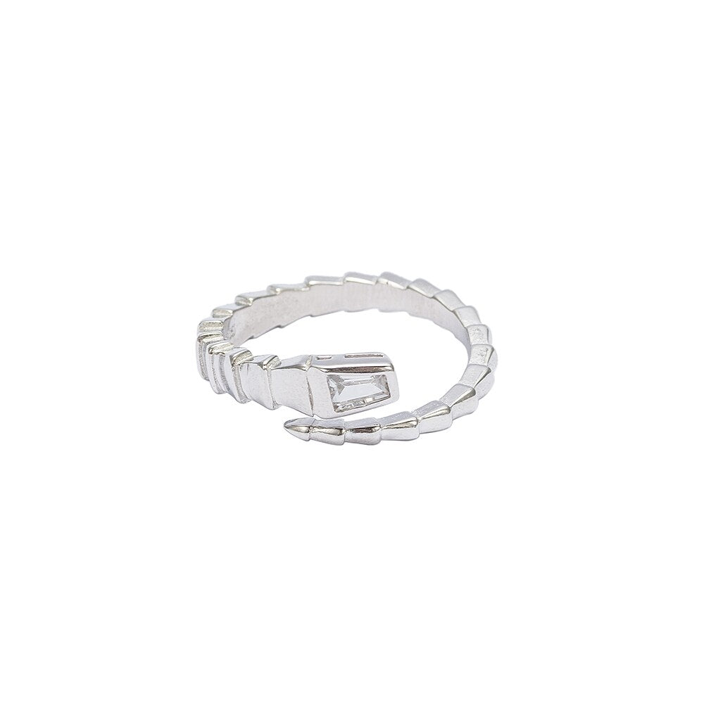 Skilled designers have worked tirelessly on this sterling silver snake ring, they have created the most beautiful sterling silver ring. The ring curls around your finger, with little silver links making up the narrowing body of the snake. The head will sit on the top of your finger and a clear stone has been used to accentuate the head. The tail curls around to the head of the snake, with the tail curling around the finger and overlapping with the head. The end result of this sterling silver ring is a work of art.